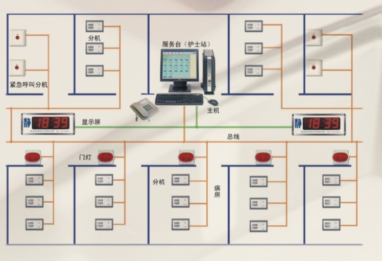 呼叫主機處理器:處理呼叫信息,功能多級顯示,顯示護理級別,處理分機故障;